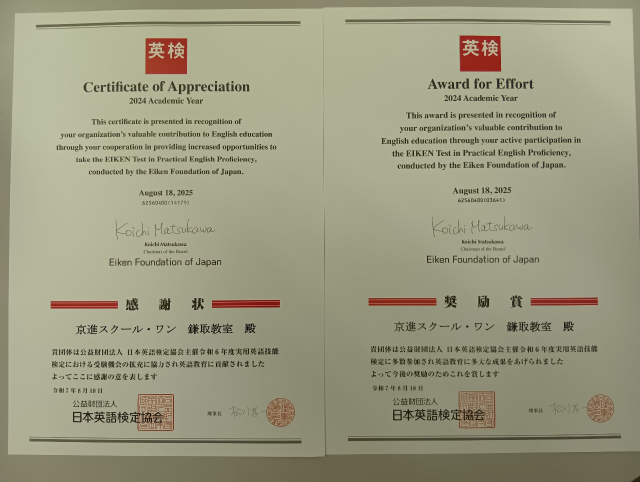 京進スクール・ワン鎌取教室は2023年度および2018年度最優秀賞(全国・首都圏ブロック)受賞教室です
