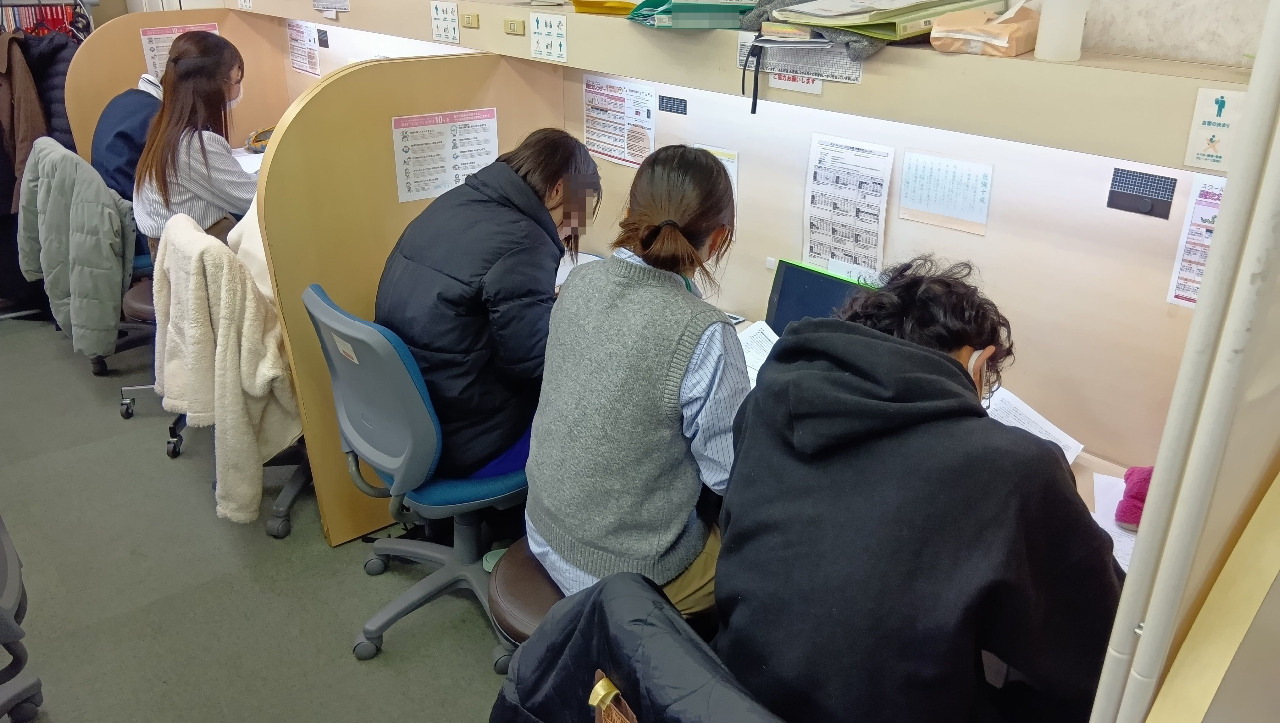 *より学習に集中していただけるように「自習ブース」を完備しています。セキュリティーチェック・モニター監視を行い、スマートフォンは受付で預かりますので学習に集中できる環境となっています。