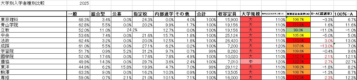 ※収容定員充足率を超えていても2年留年以内は最終的に人数除外する(大学によりますが2~3%)など細かい情報も分析を行っています